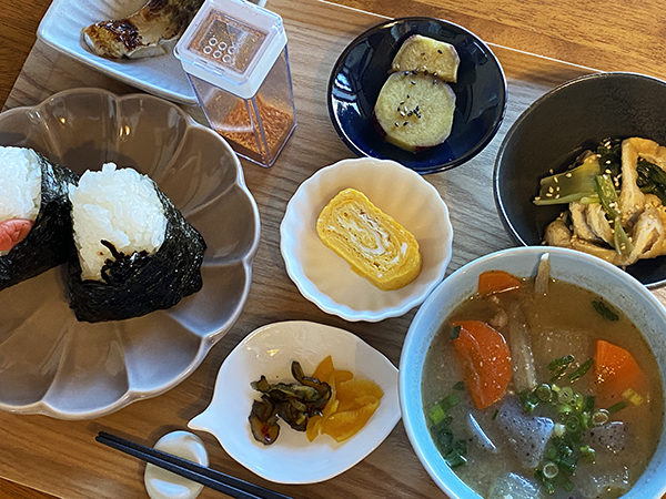 おにぎりも大きく握りたてで暖か。