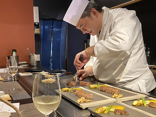 鉄板焼きの醍醐味は、目の前で調理してくれること。