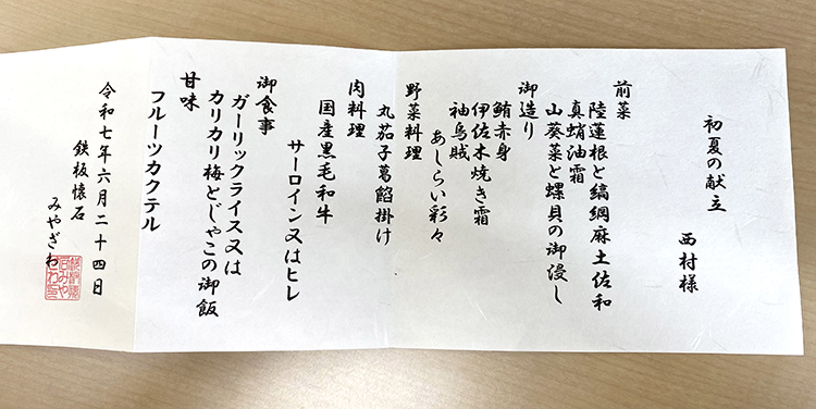 今回は「鉄板懐石料理 みやざわ」さんにお邪魔してきました。